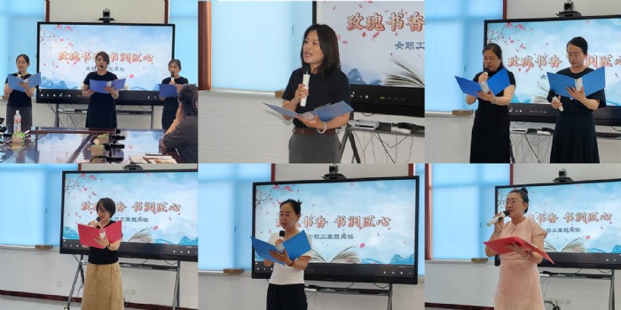 活動分為兩個部分,首先是優(yōu)秀詩文作品朗誦,有經(jīng) 典誦讀作品《大寫的中國》《我喜歡出發(fā)》《美好的一天》 《我只愿面朝大海春暖花開》《梅嶺三章》 以及職工原創(chuàng) 作品《滄鹽魂》 等;讀書心得分享環(huán)節(jié),分享了《在書香 中遇到更好的自 己》 《句子星球》 《駱駝祥子》 《長安的 荔枝》 《人生幸好有快樂》 《遇見》 等讀書感悟,并解讀 書 中所呈現(xiàn)的情懷和積極樂觀的人生態(tài)度。