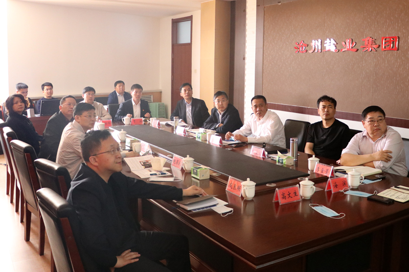 湖南鹽業(yè)雪天科技董事長(zhǎng)陳新、湘恒鹽化副總經(jīng)理趙昌武,公司領(lǐng)導(dǎo)張立莊、文興峰、李金營、于劍參加了洽談。