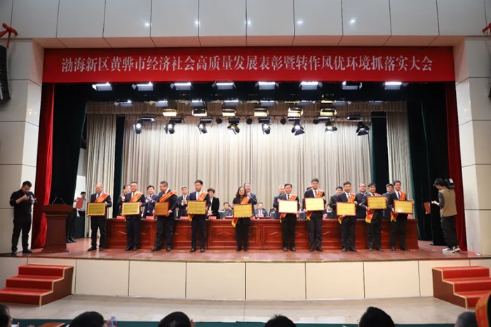 2月28日,在渤海新區(qū)黃驊市經(jīng)濟(jì)社會高質(zhì)量發(fā)展表彰 暨轉(zhuǎn)作風(fēng)優(yōu)環(huán)境抓落實(shí)大會中,河北中鐵滄鹽木業(yè)發(fā)展有限公司榮獲全市2024年度重大項(xiàng)目建設(shè)先進(jìn)單位榮譽(yù)稱號,公司總經(jīng)理海濱出席本次會議并上臺領(lǐng)獎。