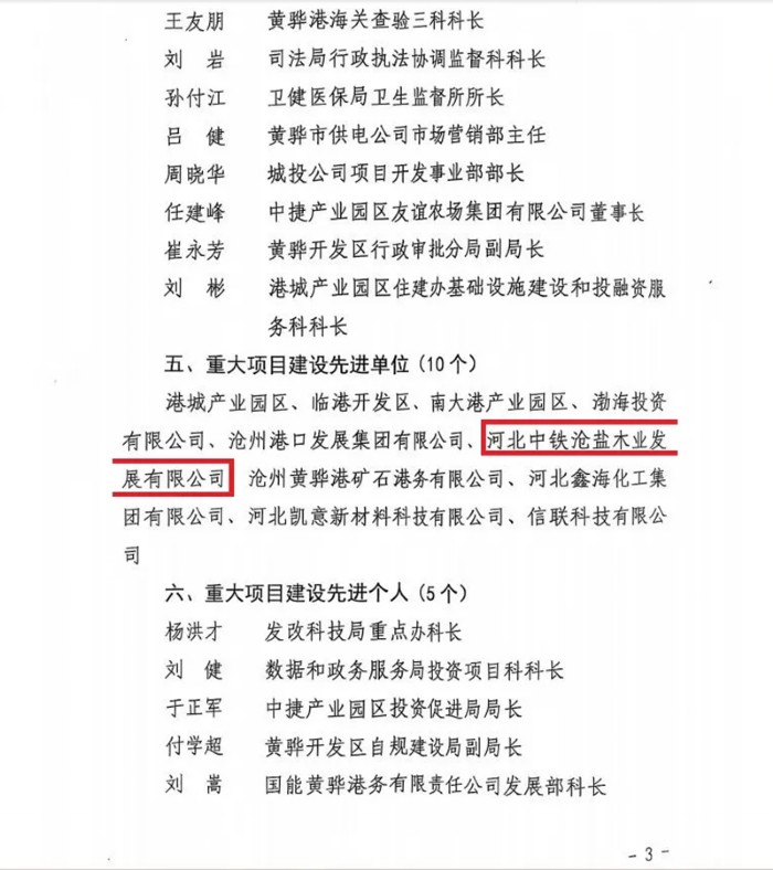 下一步,河北中鐵滄鹽木業(yè)發(fā)展有限公司將以此次表彰大會為契機(jī),嚴(yán)格按照市委、市政府及股東要求,進(jìn)一步完善項(xiàng)目手續(xù),加快項(xiàng)目建設(shè)速度,加大招商入園力度,為推動渤海新區(qū)黃驊市經(jīng)濟(jì)社會高質(zhì)量發(fā)展貢獻(xiàn)力量。